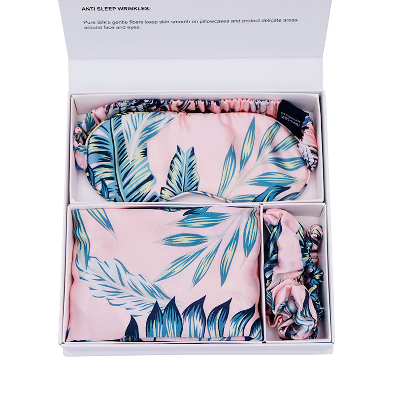 Vous êtes ici: Maison » Des produits » Chouchous en soie » Coffret cadeau personnalisé 6A, taie d'oreiller en soie imprimée, masque pour les yeux, chouchous pour la beauté des cheveux et de la peau, 19/22/25mm