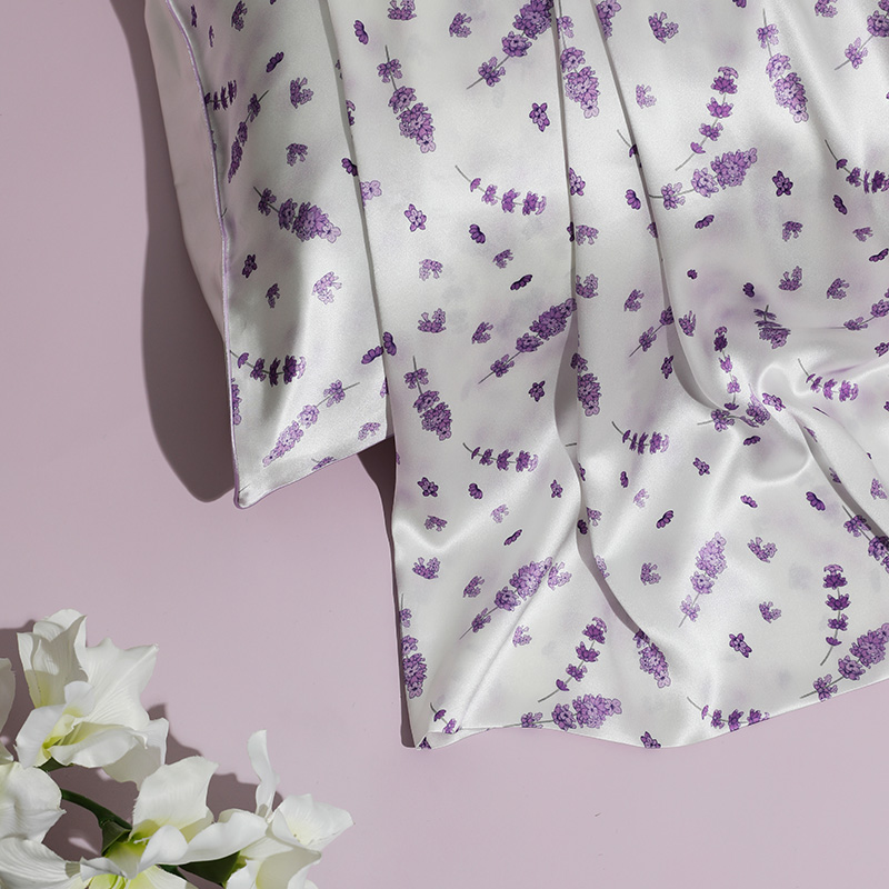 Vous êtes ici: Maison » Des produits » Taie d'oreiller en soie » Fermeture d'enveloppe 19/22/25mm/fermeture éclair cachée taie d'oreiller en soie de mûrier en gros avec motif imprimé-lavande