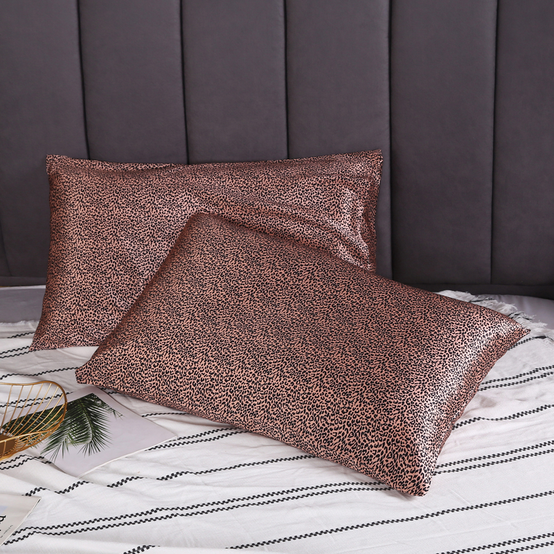 Taie d'oreiller en soie imprimé léopard avec fermeture enveloppe/fermeture éclair cachée