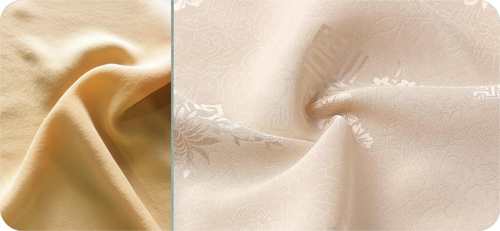 Les tissus en soie sont classés en 14 catégories en fonction de leur structure, de leur apparence et de leurs effets stylistiques, notamment le fil, la soie unie, le satin, la soie grège, la gaze, le crêpe, le brocart, le sergé, le crêpe, la georgette, la polaire, la laine et le damassé.